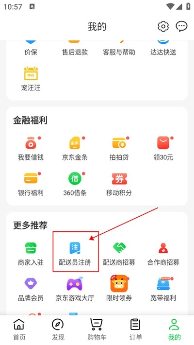 进入到我的页面,点击配送员注册