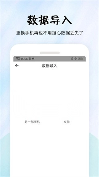 支持数据导入,手机与手机之间可以实现数据互传;