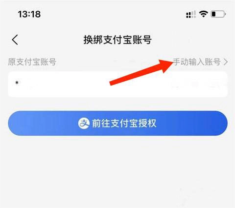 在换绑支付宝中,选择“手动输入账号”选项,