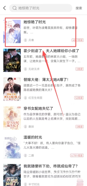 2、从搜索结果中找到想要的小说,点击进入该小说的详情页