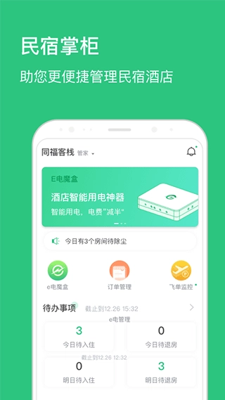 民宿掌柜是一款专业化的线上办公应用,为民宿管理者提供全方位的支持与服务。借助自动化功能、数据管理及用户体验优化,可有效提升管理效率与客户满意度。建议搭配E电魔盒使用该应用,以获得更优的体验与管理成效。若您是民宿管理者,民宿掌柜定能助力您提高工作效率、强化管理力度,达成更出色的经营业绩。