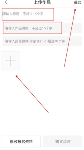 您只需输入作品名称及其相关信息,接着点击+号添加作品图片,完成后点击提交按钮就可以了。