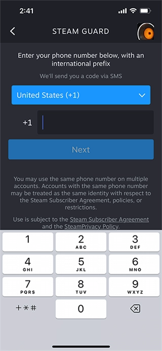 接下来,请您输入一个电话号码。我们会向这个号码发送一条确认短信。要是您之后碰到无法访问Steam帐户的情况,可以让Steam向该号码发送短信,这样就能快速恢复对帐户的访问权限了。