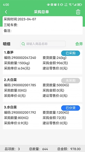 生鲜要货单