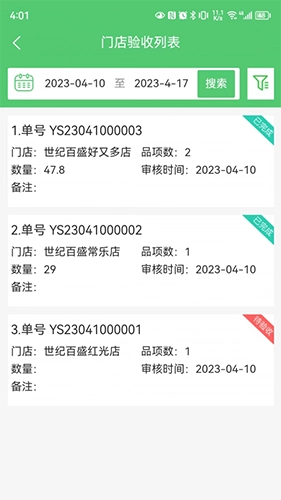 查看门店验收,知道各个门店的验收情况