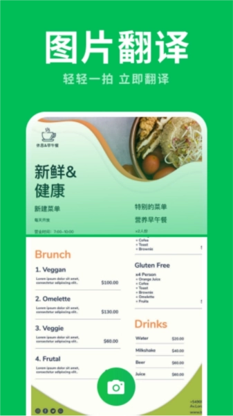 全能翻译大师具备拍照翻译功能,只需一键拍照,就能立刻呈现所有译文内容。