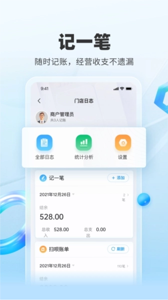 扫呗是一款专注于助力商户快速获取行业生态能力的移动应用。它通过对接第三方外卖等功能,为商户拓展了更多经营选择。此外,应用内的账本支持附加服务费金额展示,能让用户体验到更顺畅的操作感受。不管是随时随地管理账目,还是查询收银员等相关信息,扫呗都能让用户轻松达成。