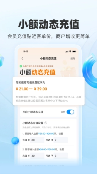 支付即会员、储值会员等多元卡券营销功能,助力商户拓展更多客源、提升客单价。