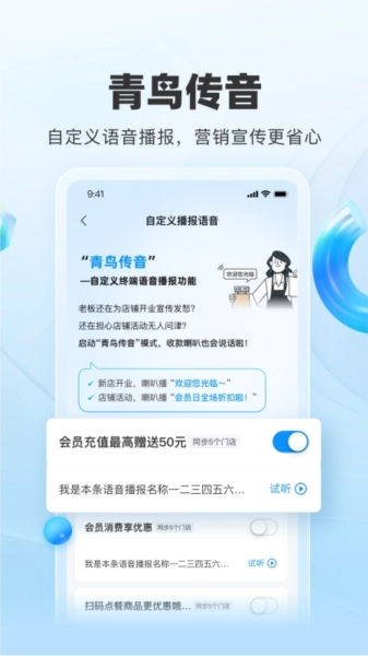 极速收款语音播报,清晰收款信息展示,交易更安心;