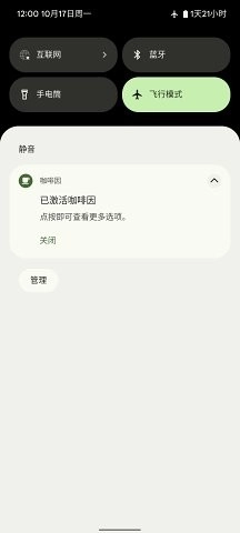 咖啡因的入口也在下拉菜单的快速设置里,你得先编辑快速设置,再把咖啡因拖进去,这样就能快速启动它了。