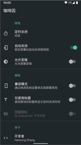 一般情况下,在启动器里长按咖啡因的应用图标,接着点击「切换」选项就能切换咖啡因的状态。