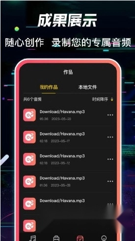 我的作品:该软件支持用户将自己制作完成的音频保存至“我的作品”板块进行管理。