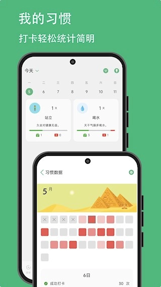 3、习惯养成培养:创建每日习惯打卡任务,支持修改重复频次与打卡量,生成简明日志统计,助力习惯坚持。