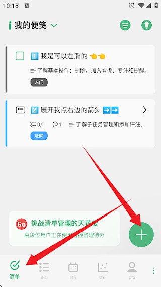 1. 在清单页面点击“+”来创建清单