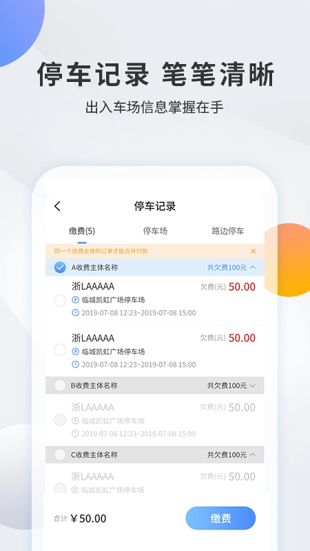 应用内设有停车记录板块,用户可在此查看自己的详细停车记录,了解过往的停车信息。