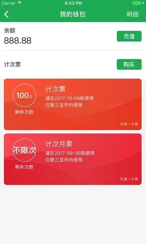 进入我的钱包板块,查看个人的余额与车票信息,了解自身的充值及消费明细。