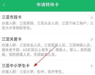 最后点击“三亚中小学生卡”,填写相关资料就能完成申请。