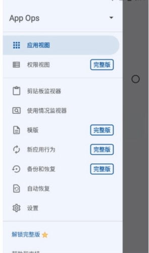 AppOps采用安卓原生设计风格,界面简洁得“一目了然”。主界面直接展示所有应用,点击就能调整权限;侧边栏配备排序、筛选工具,老人也能轻松上手。更贴心的是,它支持导出和恢复权限配置,换手机时一键迁移设置,省去重复操作的麻烦。