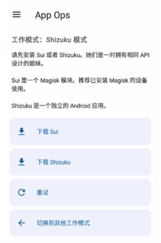 在Shizuku里完成AppOps的授权操作,之后返回AppOps就能正常使用了。