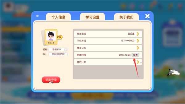 点击头像个人信息,点击续费;