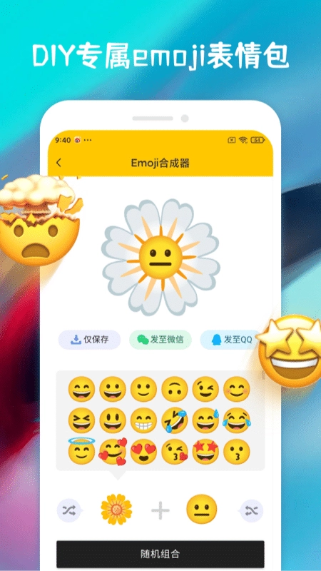 丰富素材:软件提供了海量emoji素材供用户挑选,覆盖不同风格、各类主题的emoji。用户能依据自身喜好与需求,挑选合适的emoji开展组合创作。