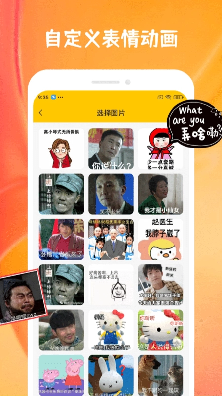 表情包创作,在表情图片上添加专属文字,支持文字旋转与缩放,你的表情包由你自主掌控。