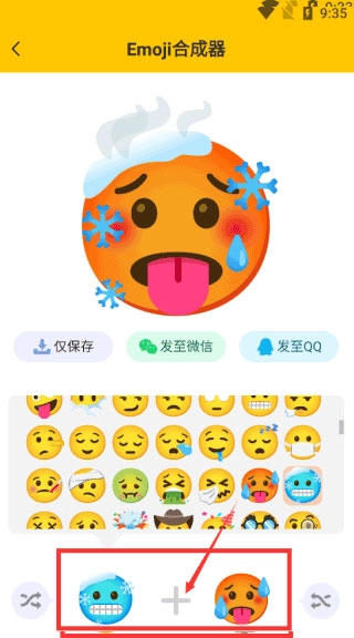 可以看到这里有超多Emoji,还能让两个Emoji进行合成,只要点击下方的两个Emoji,就能合成出不一样的表情啦!