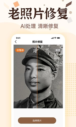 照片修复功能可自动识别照片的损坏状况,并开展智能化修复工作。