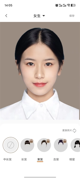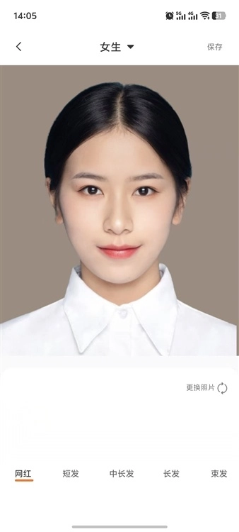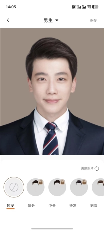 先预览调整后的效果,确认没有问题后点击保存,接着选择合适的图片格式和清晰度,这样就完成老照片换发型的操作了。