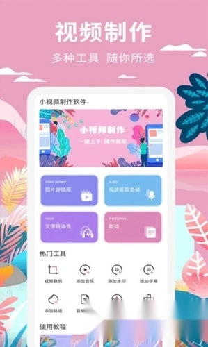 小视频制作是长沙高坪网络技术有限公司推出的一款出色视频制作软件,它的界面清新简洁,配备了丰富便捷的视频制作功能,用户借助它能轻松剪辑出高质量视频。软件涵盖视频剪辑、裁剪、加水印、图片转视频、添加字幕、音频裁剪、文字转语音等实用功能,且每个功能都附有详细教程,方便大家快速上手,助力用户轻松打造精美视频。此外,软件还提供贴纸、音频、水印等多种素材资源,各类素材包含不同类型,均免费供用户使用,大家可随时挑选所需素材,让视频更具亮点。感兴趣的朋友不妨来体验一下!