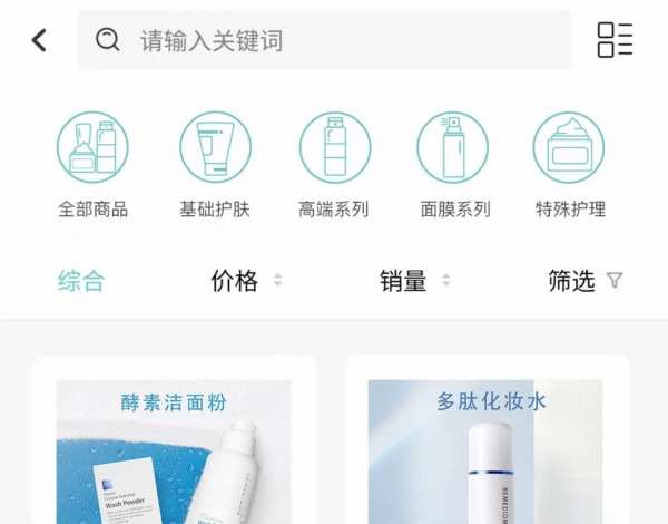 功能分类:按肤质、功效等维度筛选。