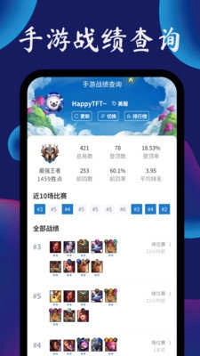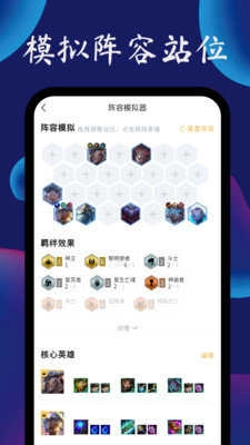 游戏数据,英雄装备数据、评级,羁绊职业数据,天选概率等各类数据应有尽有。