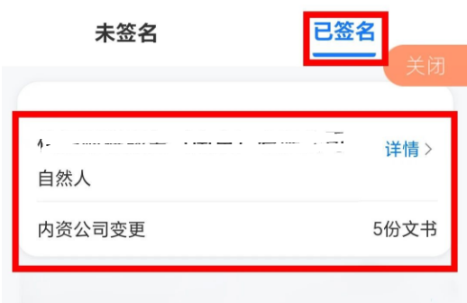 10. 在“已签名”页面,能够查看到办理公司的数据信息,且签名任务已全部完成。