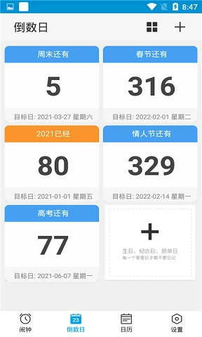 灵鹊鸟闹钟是一款手机服务软件,它不只是简单的闹钟工具,用户不仅能使用闹钟功能,还可以利用日历、倒计时等多种功能,方便记录生活里的重要事项,像距离生日还有多久、距离发工资还有多长时间等。这款软件操作十分简便,灵鹊鸟闹钟会帮你把这些重要信息都记好!