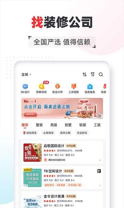 5年累计服务600万业主的装修经验总结,全国6万家装修公司任你挑选。