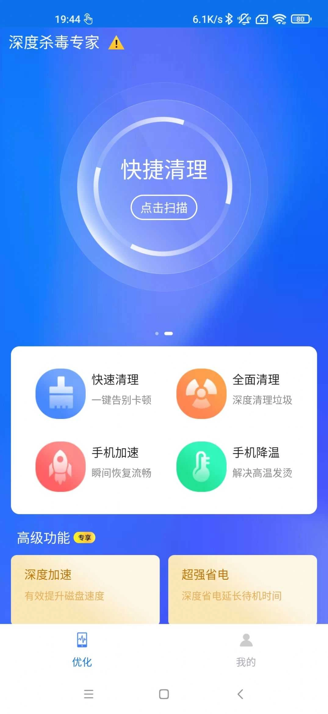 深度杀毒专家是一款实用的手机清理工具,它功能全面,能满足多样的清理需求,可随时在线清理手机垃圾、释放内存,操作便捷,让你轻松完成清理,而且所有清理功能都是免费的,使用方便,是大家清理手机时不可或缺的好帮手。