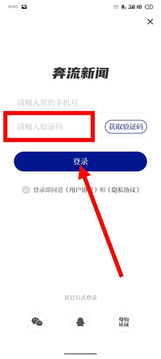 3、进入登录页面后,输入手机号,点击获取验证码。