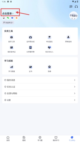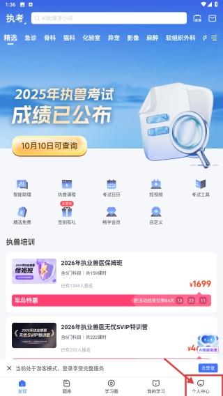 1、打开执兽考试类应用,点击底部个人中心选项,进入个人中心页面。