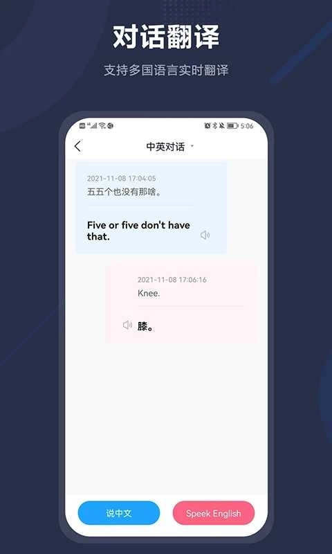 对话翻译:当前已支持多种语音对话翻译功能,能够满足实时面对面交流的需求。