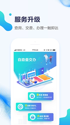 购买手机、缴纳话费、查询账单、变更套餐、办理卡号、安装宽带……轻松体验4G服务,自助操作便捷高效。