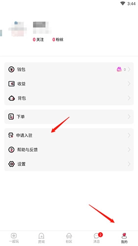 打开软件后,点击底部的“我的”选项,接着点击“申请入驻”选项。