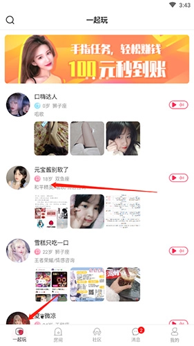 打开软件后,点击底部的“一起玩”选项,接着挑选心仪的陪玩并点击其头像。