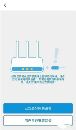 接着进入页面后,点击图中所示的“已安装好网关设备”选项,完成绑定操作后返回首页。