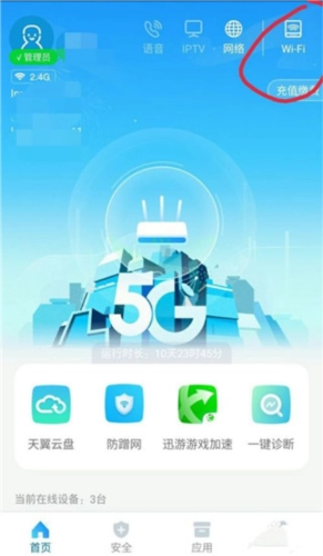 然后回到首页后找到图示右上角的“Wi-Fi”。