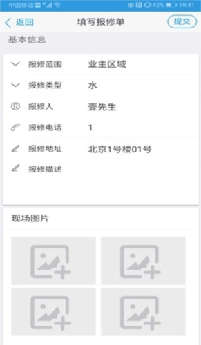 在线报修:为业主提供一键提交维修需求的便捷服务,同时支持故障描述与图片上传,助力准确传达问题详情。