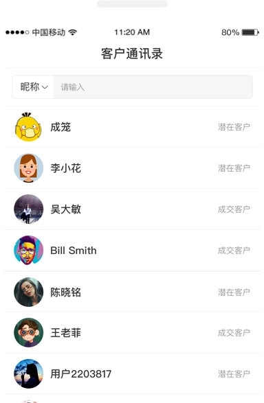 提供客户通讯录功能,用户能够按照不同分类直接检索并查看相应客户的信息。