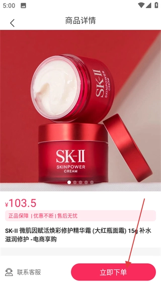 3、在商品详情页面,点击立即下单,即可完成该商品的购买操作。