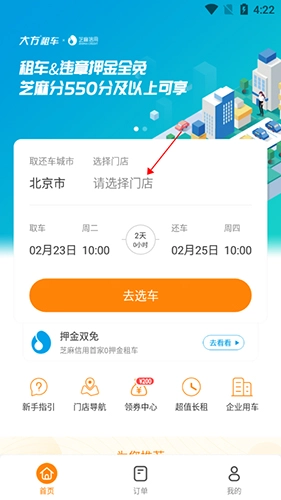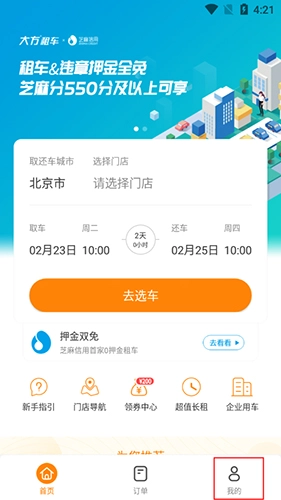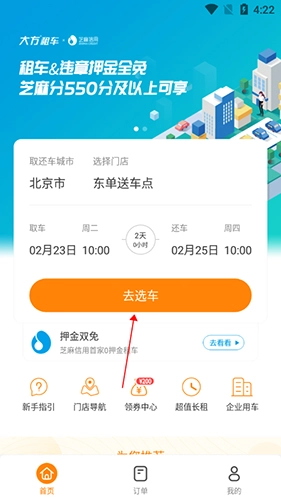 大方租车作为芝麻信用全国首家押金双免的租车平台,只要您的芝麻分达到550及以上,就有机会享受租车押金与违章押金全免的福利。选择大方租车,让您租车全程0“押”力。