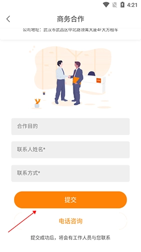 点击商务合作按钮