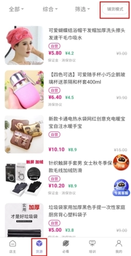 在货源页面中点击上方的铺货模式按钮;
